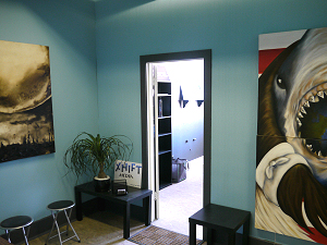 Hangout area with paintings Work in progress Cleaning the floors Hallway with retro lighting Xhift Media office Stairs to Windhover Ladies working the power tools Some unfinished rooms A new room created painting away Workin and stoppin for a pic Three spaces